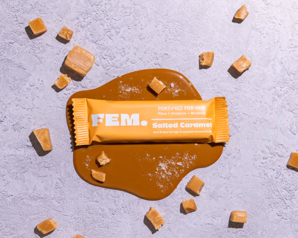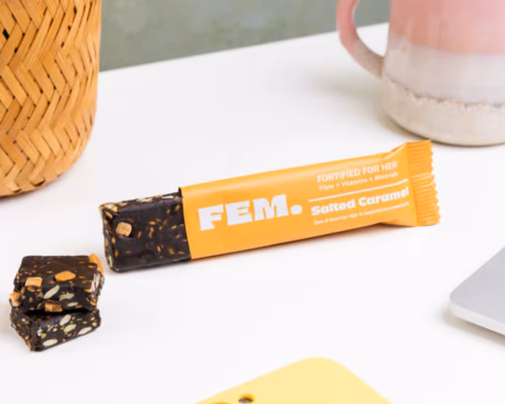 Women’s cycle support is a category that’s been dominated by supplement capsules and tablets - formats that many women find inconvenient, unappealing, or easy to forget. FEM wanted to deliver targeted micronutrients in a food format that fits into daily life: a bar you actually look forward to eating.