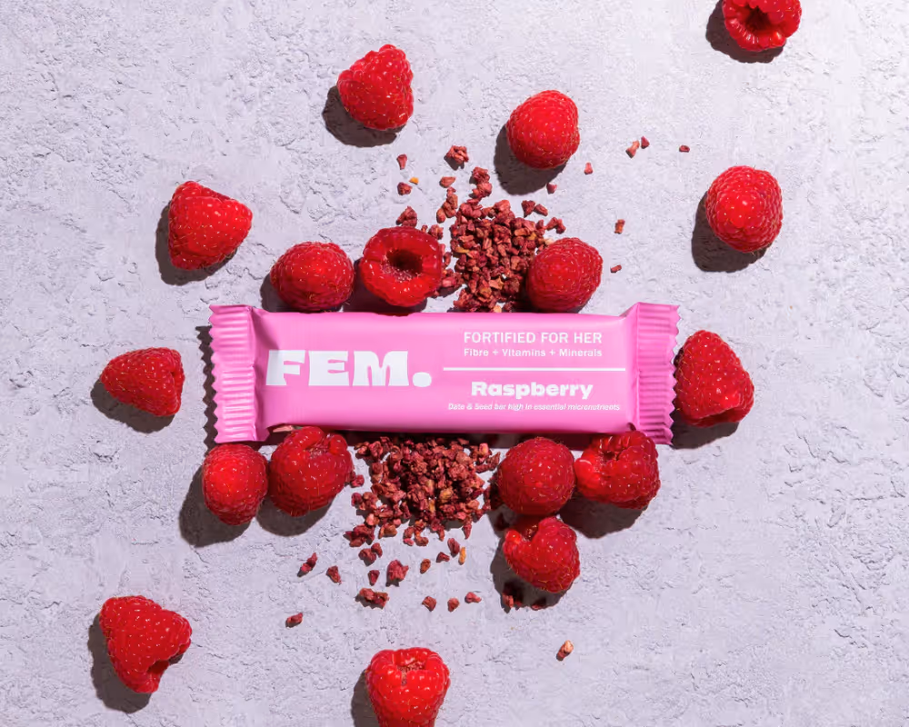 Every ingredient is organic, plant-derived, and Soil Association certified. The blend integrates into FEM’s cold-pressed bar format at just 0.1% of the recipe, delivering meaningful nutrition without affecting taste or texture.